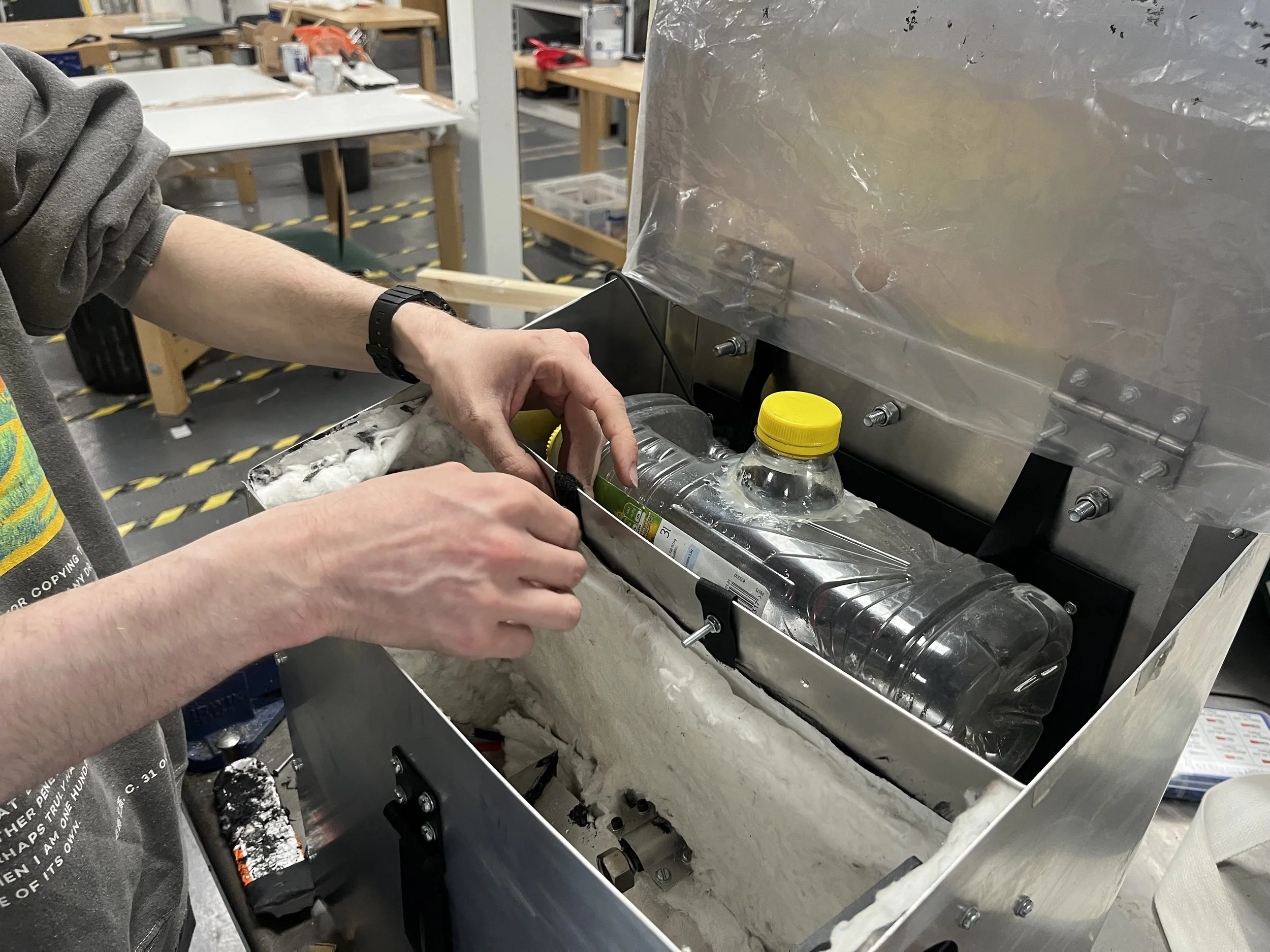In order to operate in the extreme conditions of rural Kenya, design and material considerations included waterproofing, insulation, temperature control and cost.