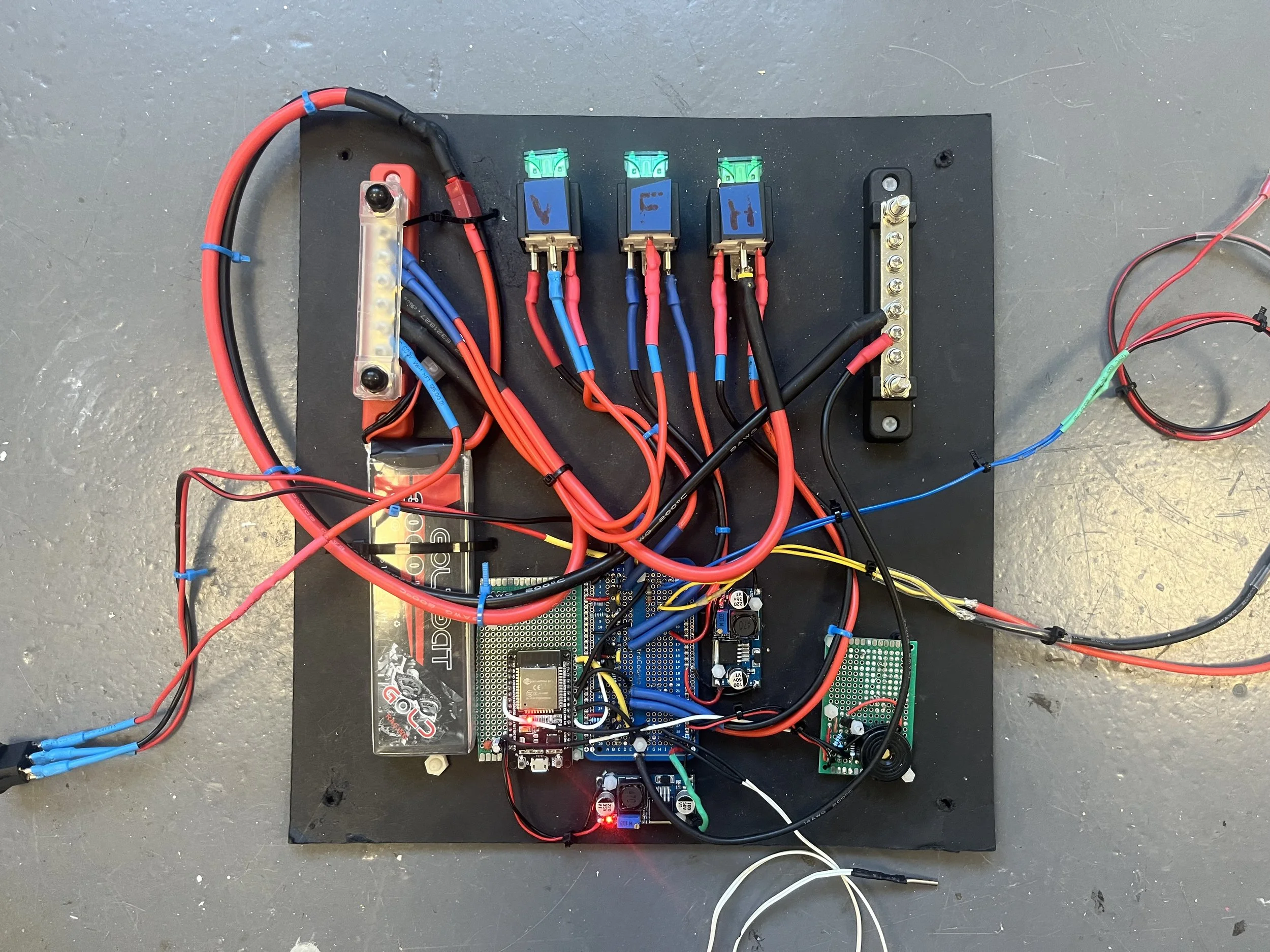 Through power and load calculations, it was decided that the system should be powered by a 12V rechargeable Lithium Ion battery and an ESP32 microcontroller (code written in Arduino micro-python)
