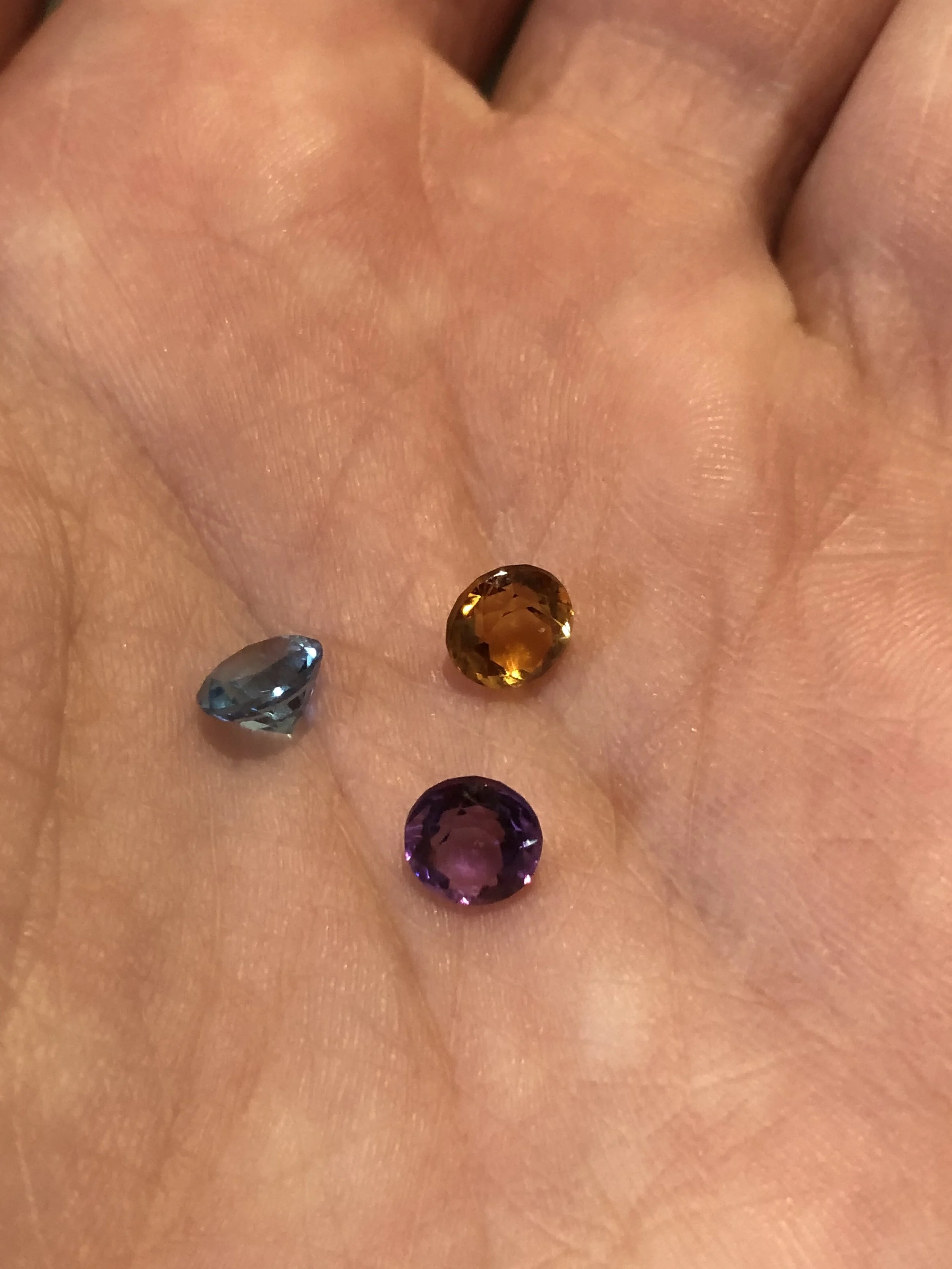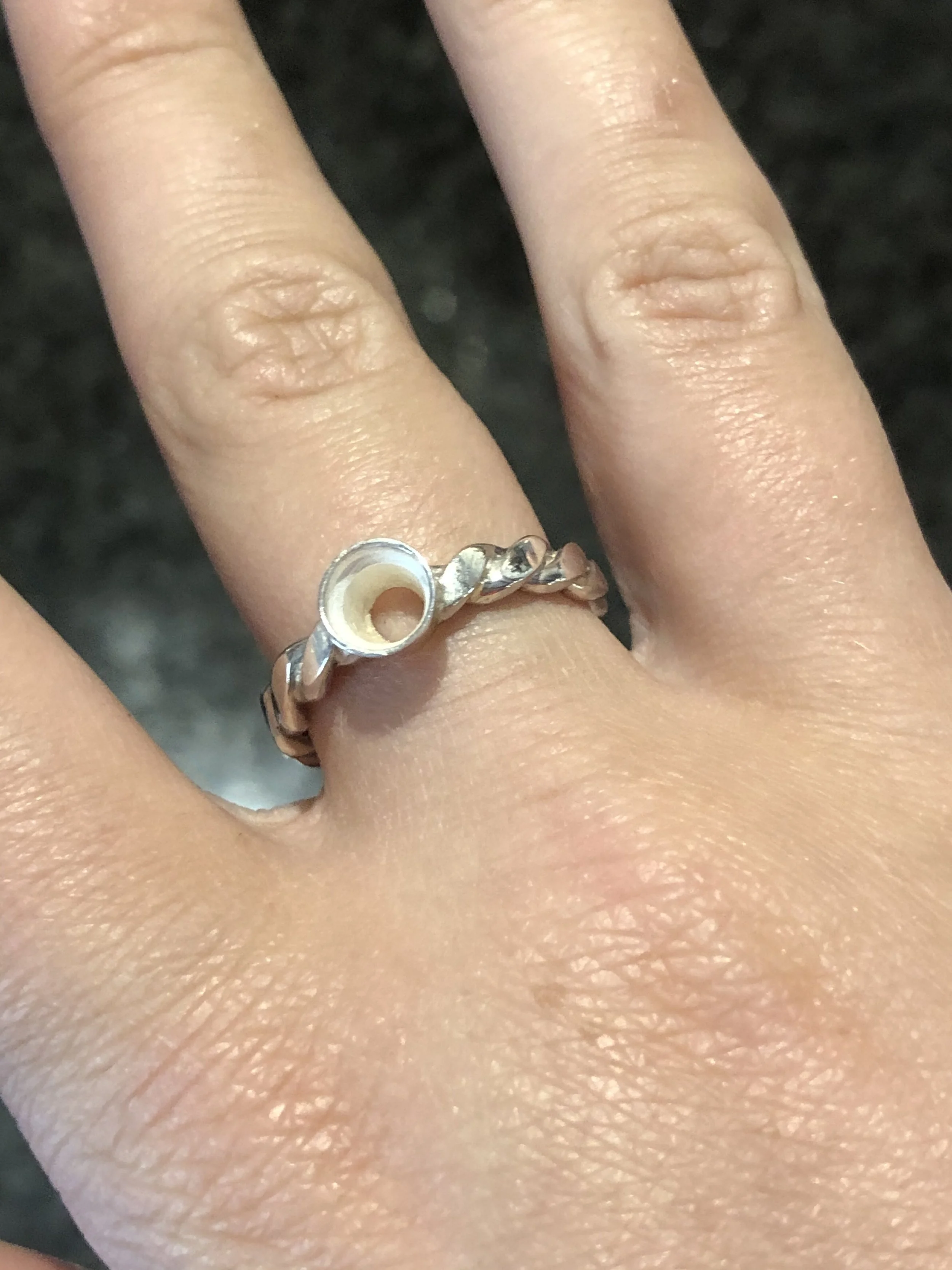 Manual shaping, soldering & laser welding was used to create ring shapes from the base materials: silver wire, stone sets and cut stones